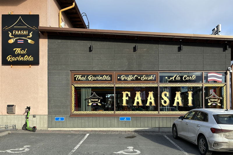 Faasai Kalevan thaimaalainen buffet sisältää reilun salaattipöydän, maistuvan keiton, sekä ennen kaikkea herkullisen ja runsaan Thai-buffet-pöydän, josta löytyy maukkaiden lihojen lisäksi myös maittavia kasvisvaihtoehtoja sekä sushia. Lapsille sopivia ruokia löytyy myös buffetista. Jälkiruoaksi voi nauttia leivonnaisia ja jäätelöä kahvin tai teen kanssa.
